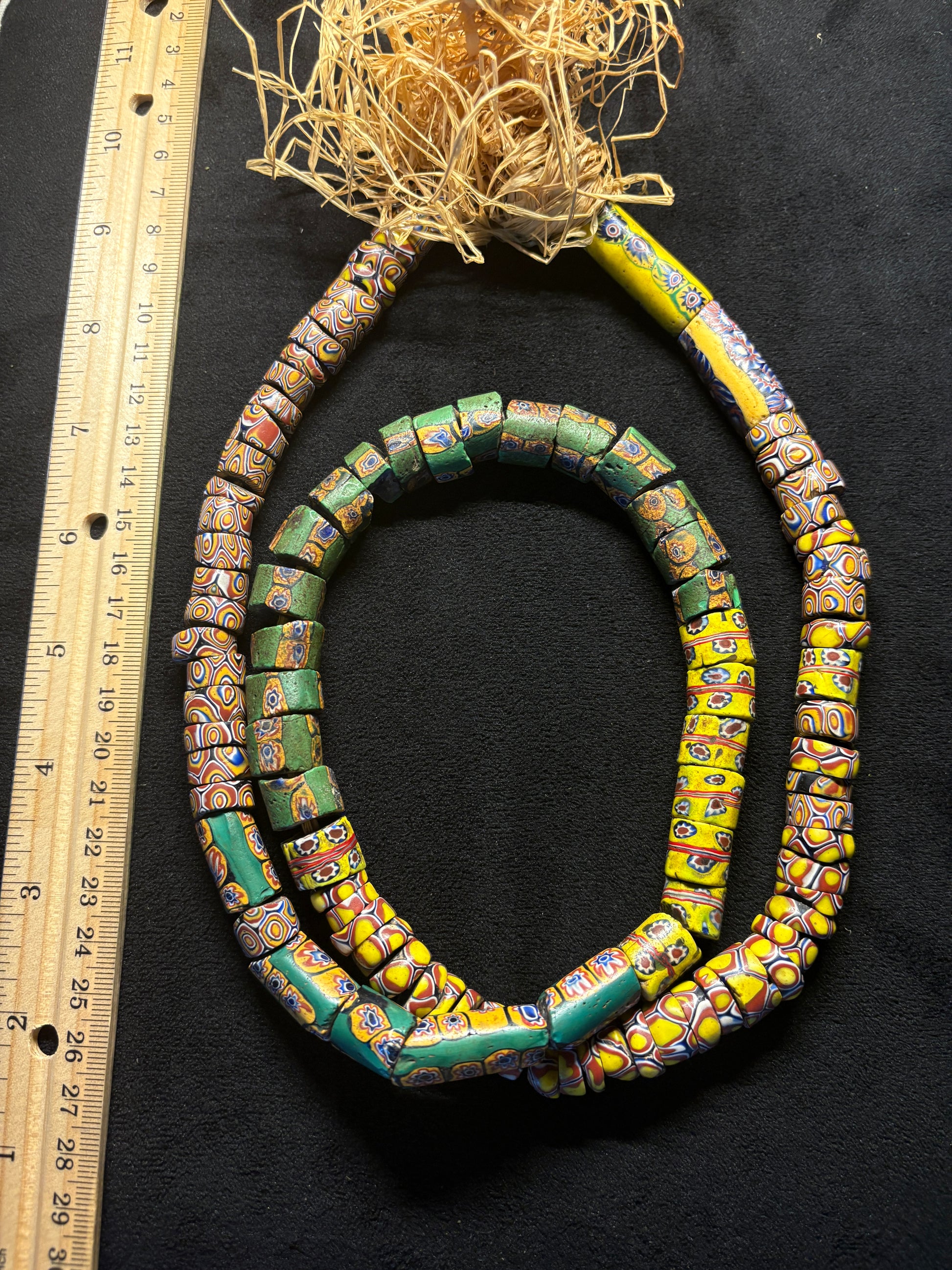 Antique Authentic African Trade Bead Necklace - Large Millefiori Beads - 32" [BR0004]
