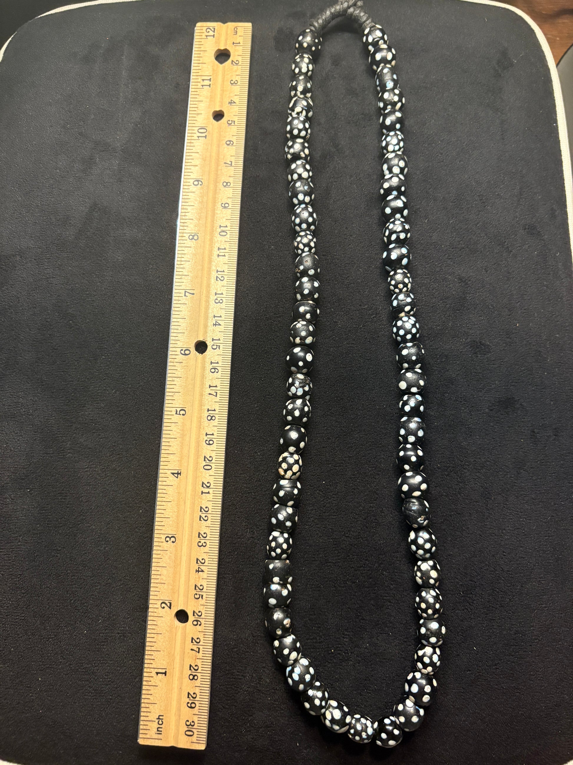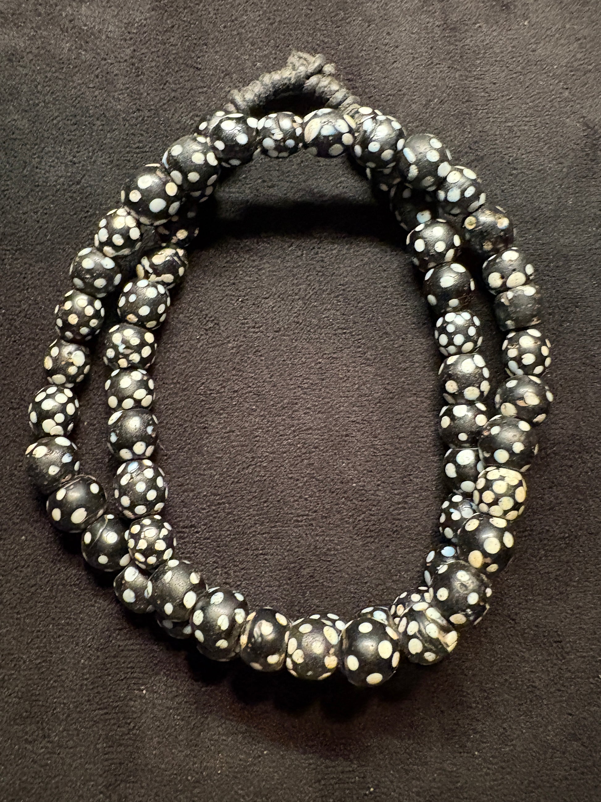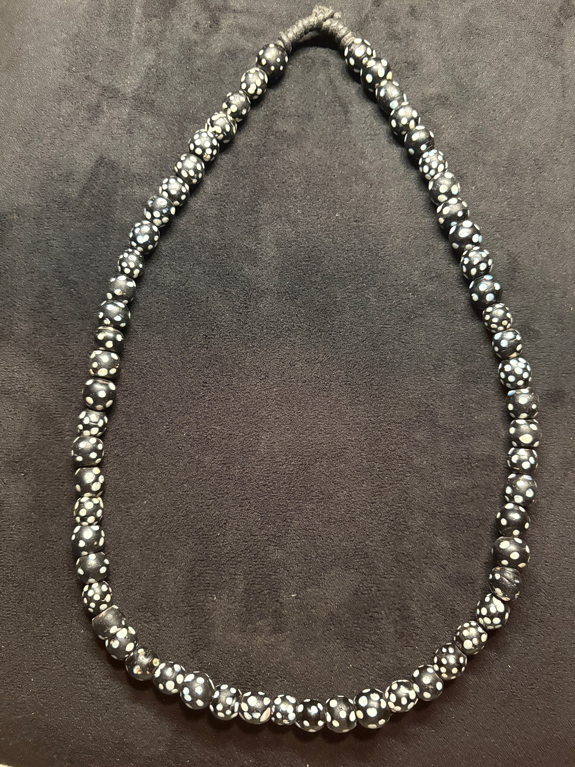 Antique Authentic African Trade Bead Necklace - Black Polka dot Beads 25" [BR0008]