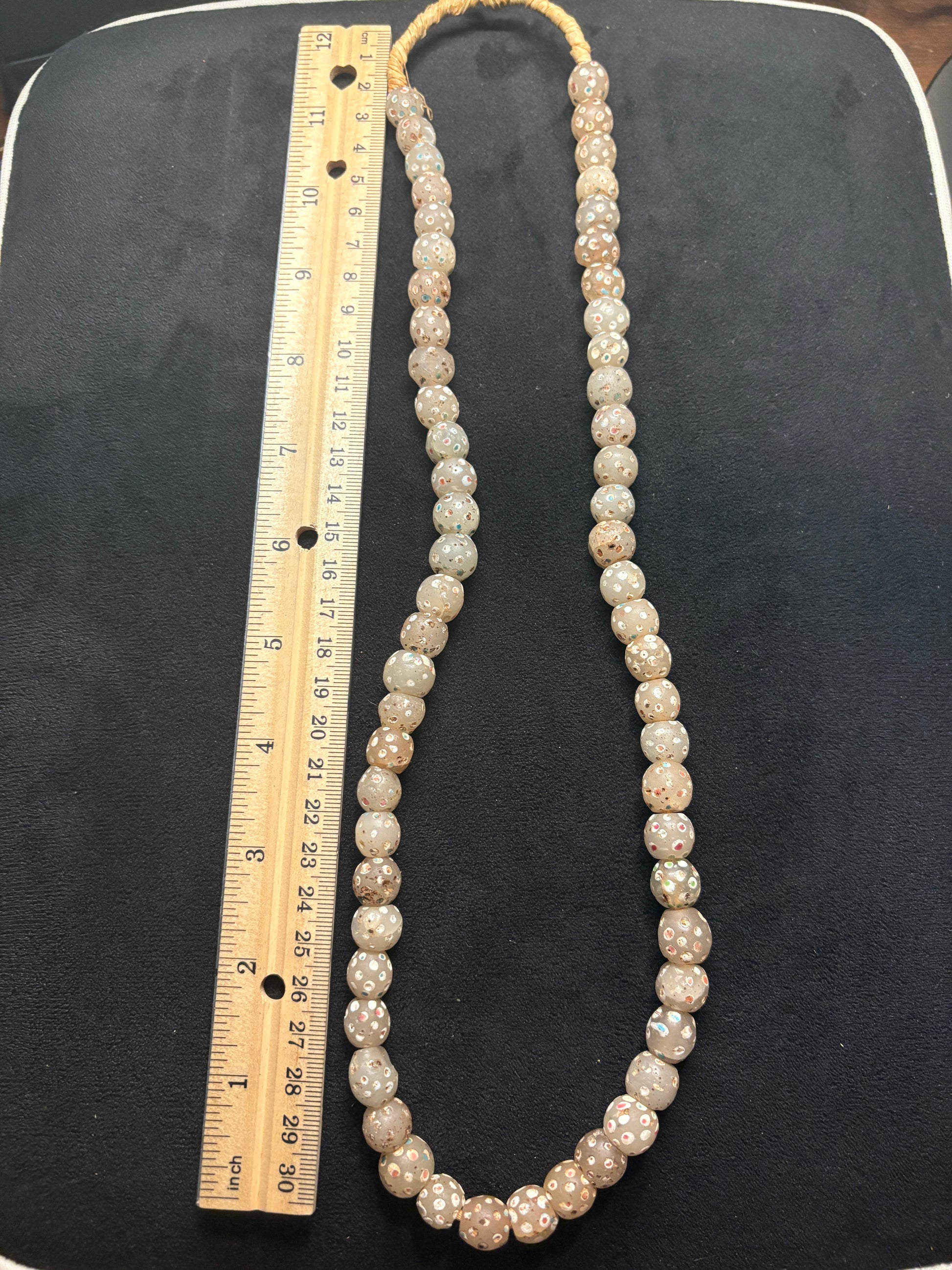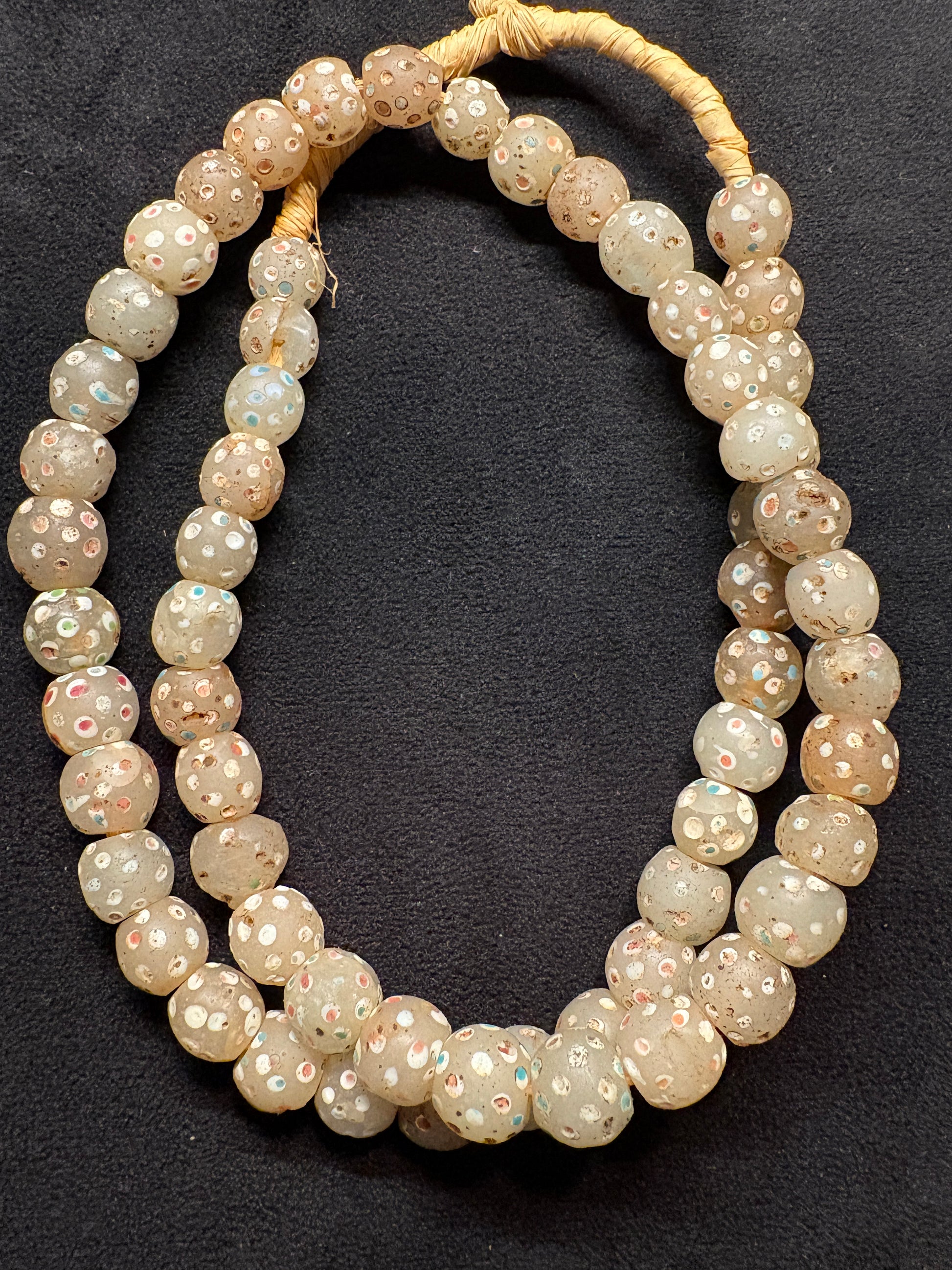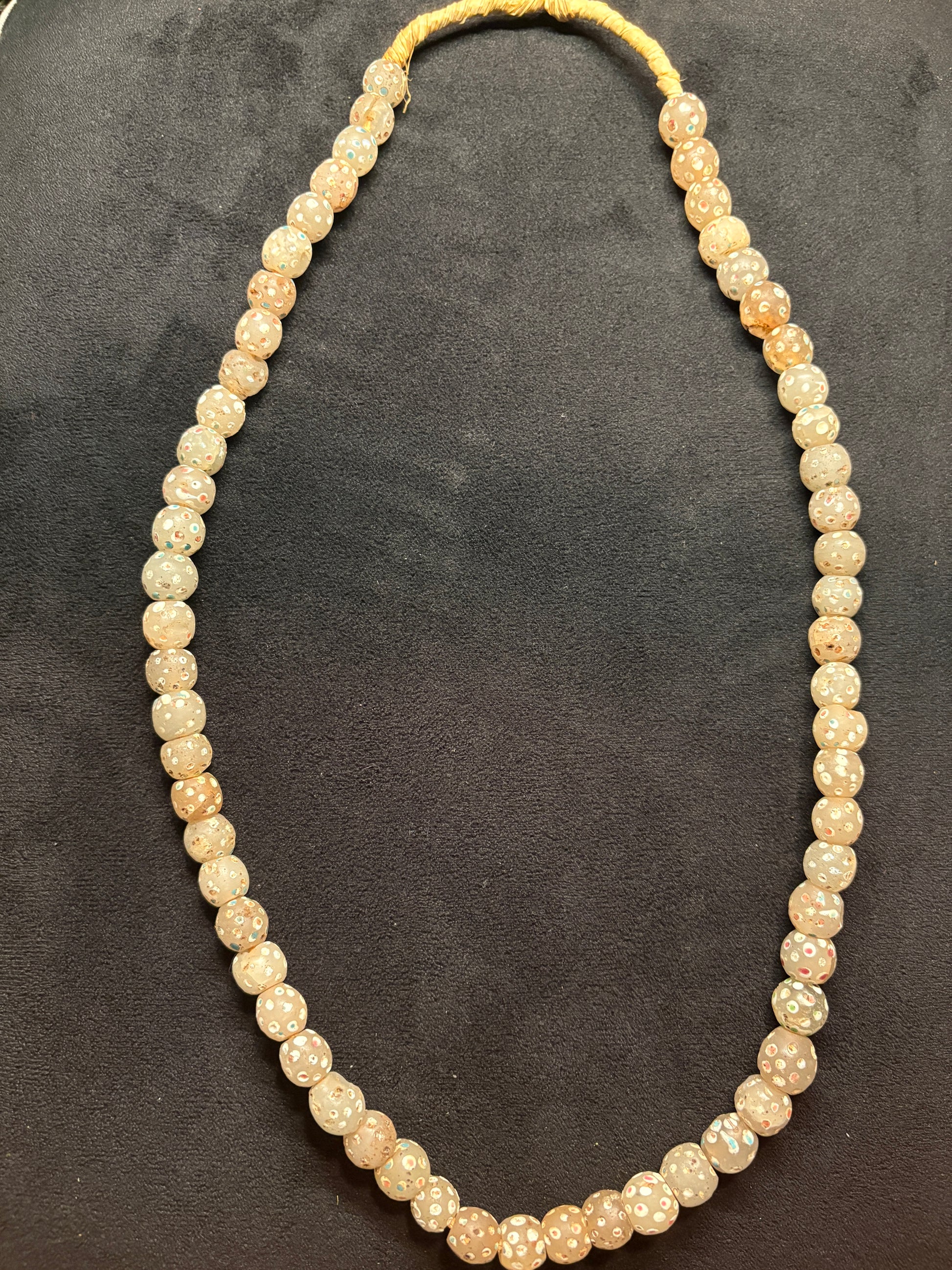 Antique Authentic African Trade Bead Necklace - Polka dot Ghost Beads 26" [BR0007]