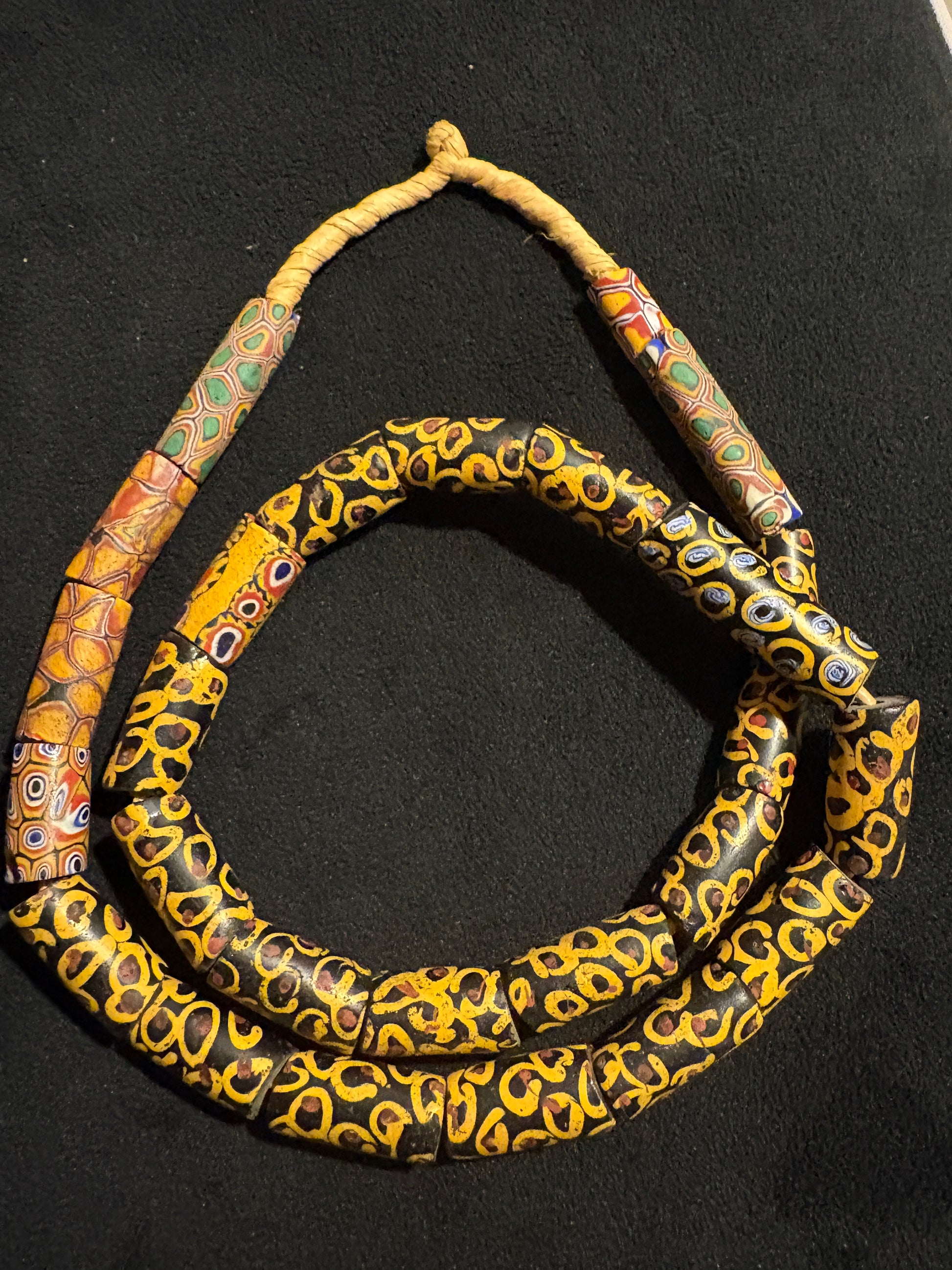 Antique Venetian African Trade Bead Necklace - Fried Egg Fancy Beads 26" (BR0030)