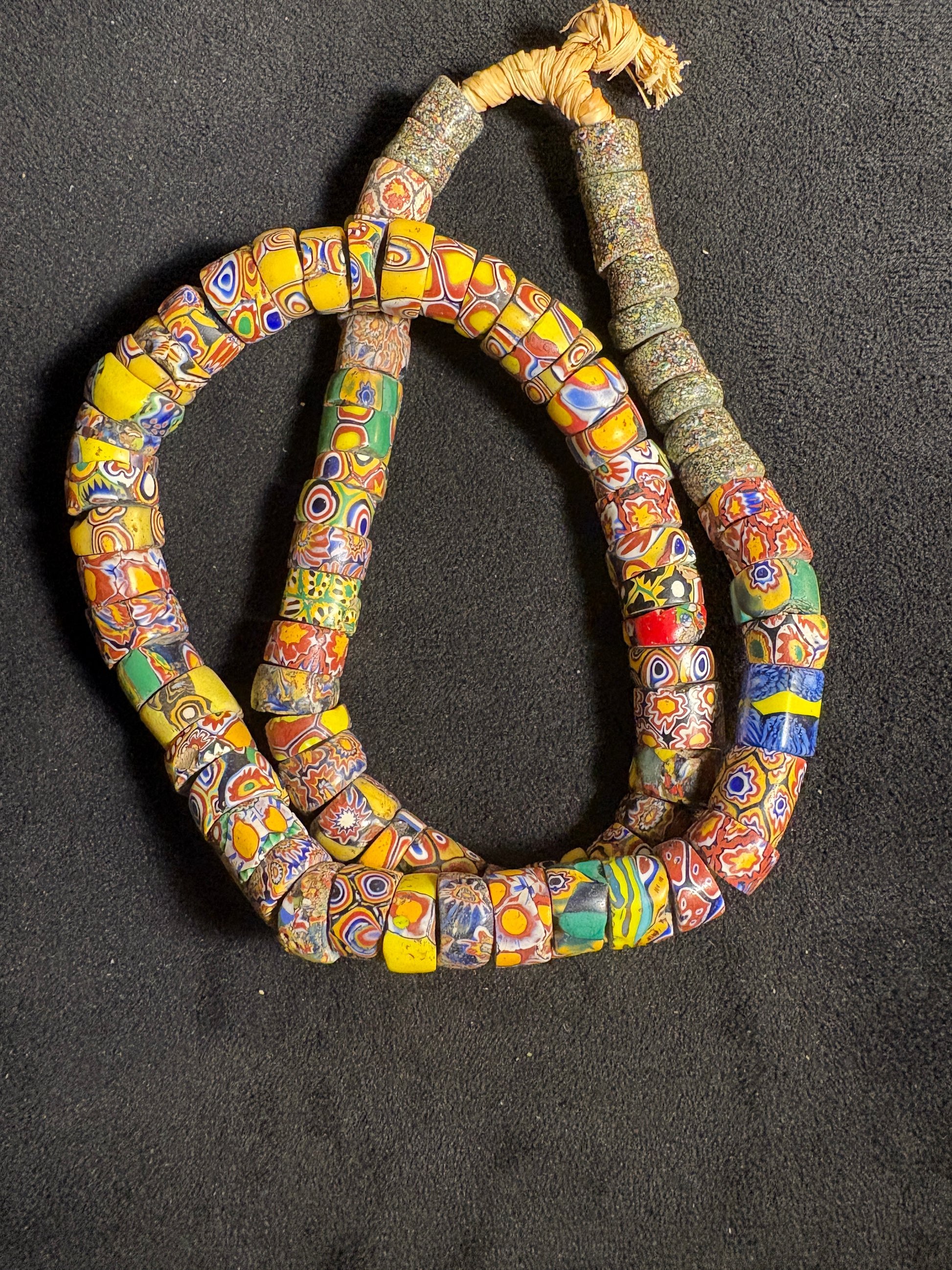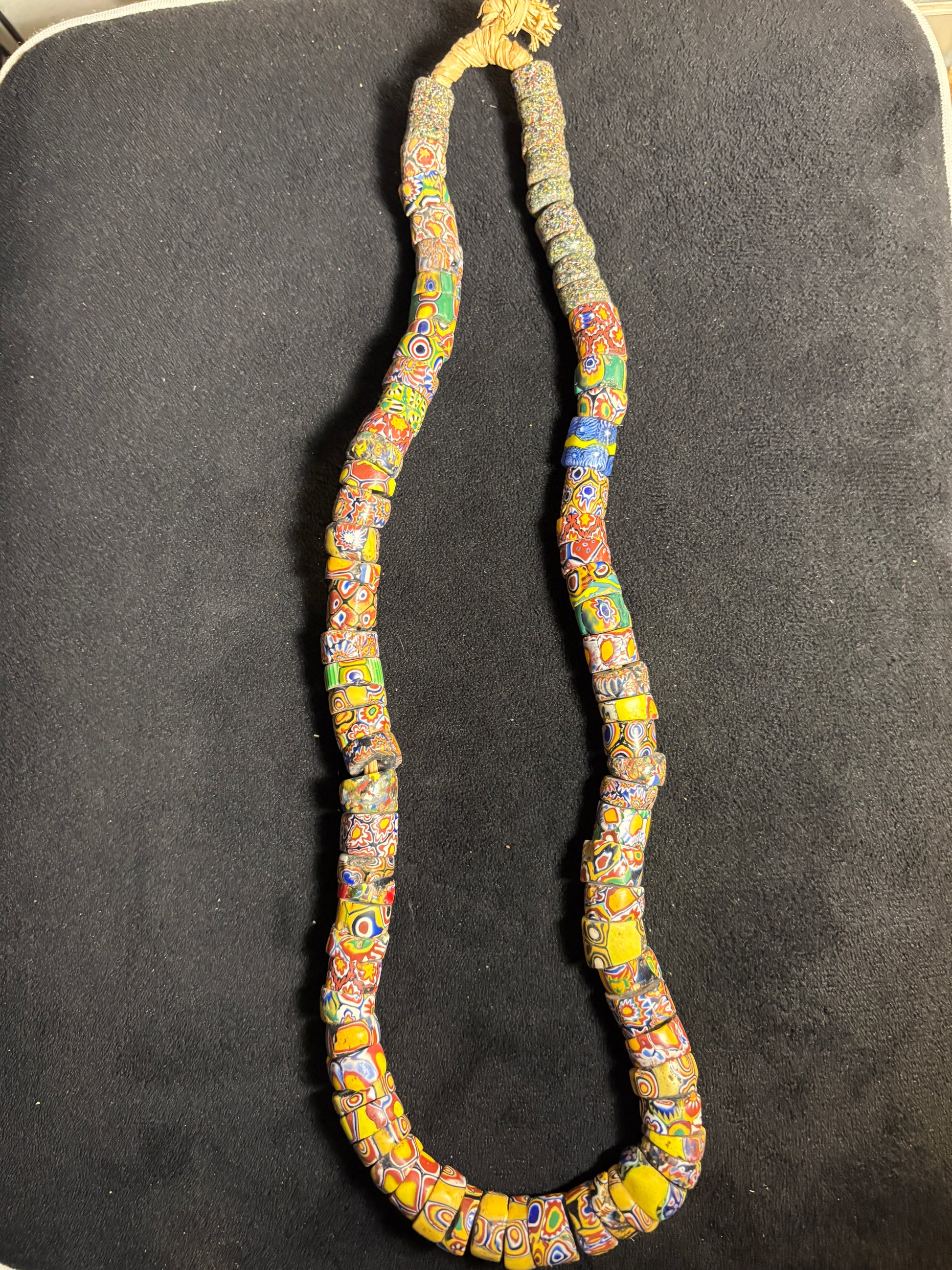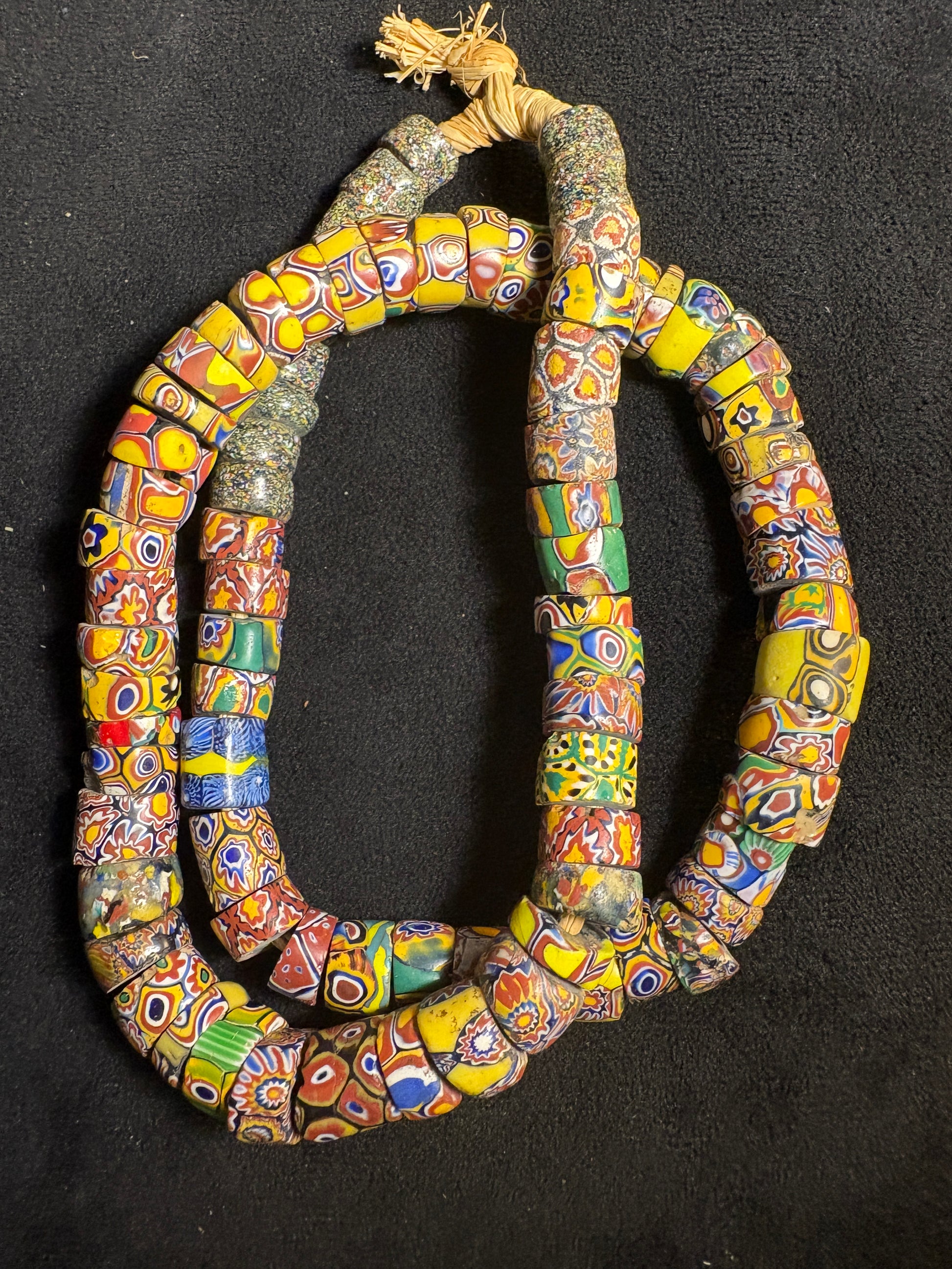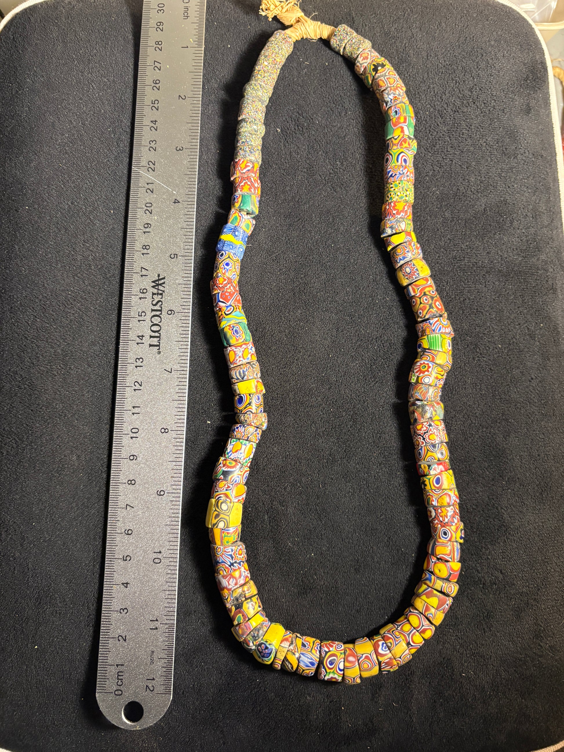 Antique Venetian African Trade Bead Necklace - Millefiori Beads 24" (BR0035)