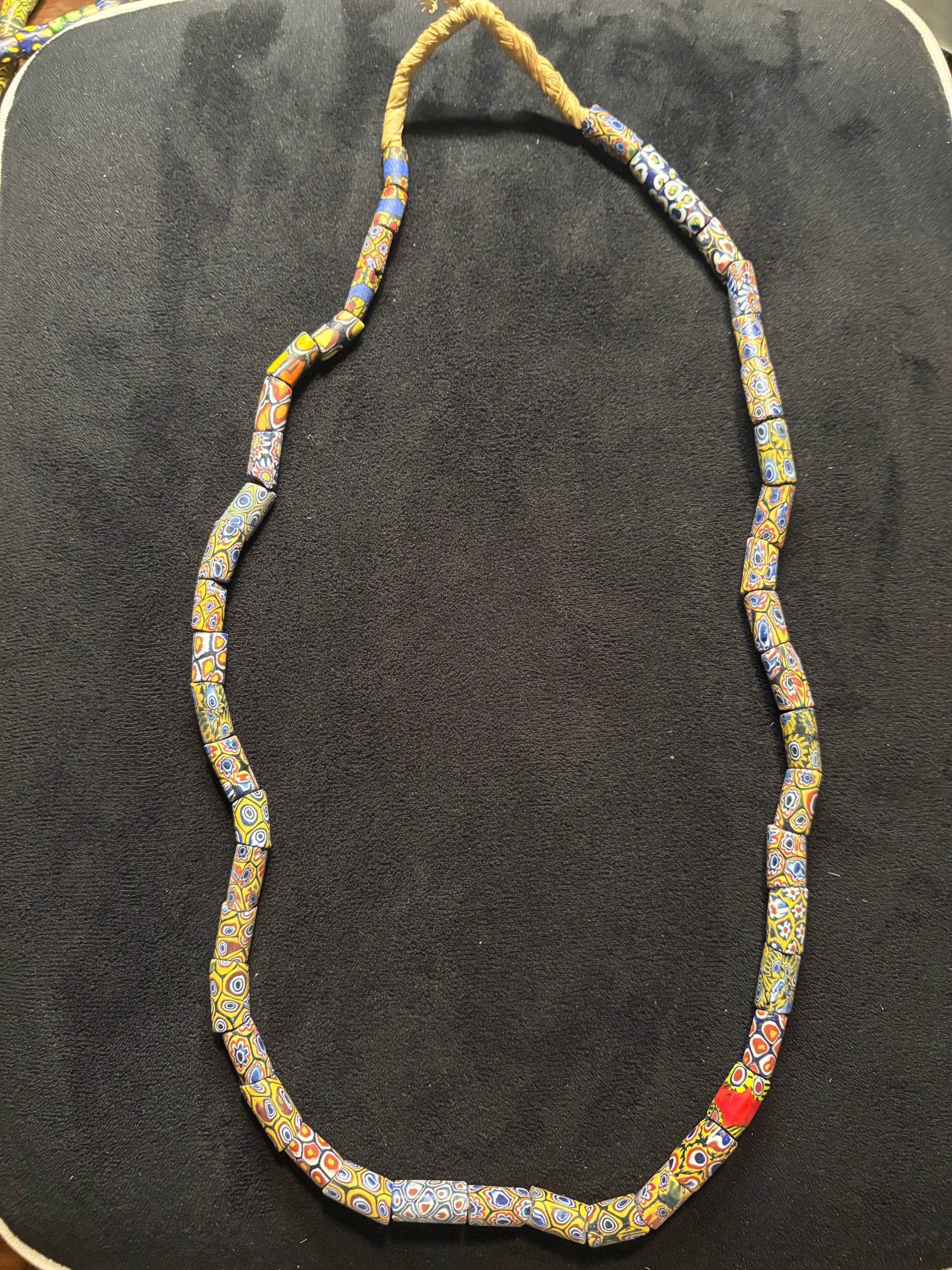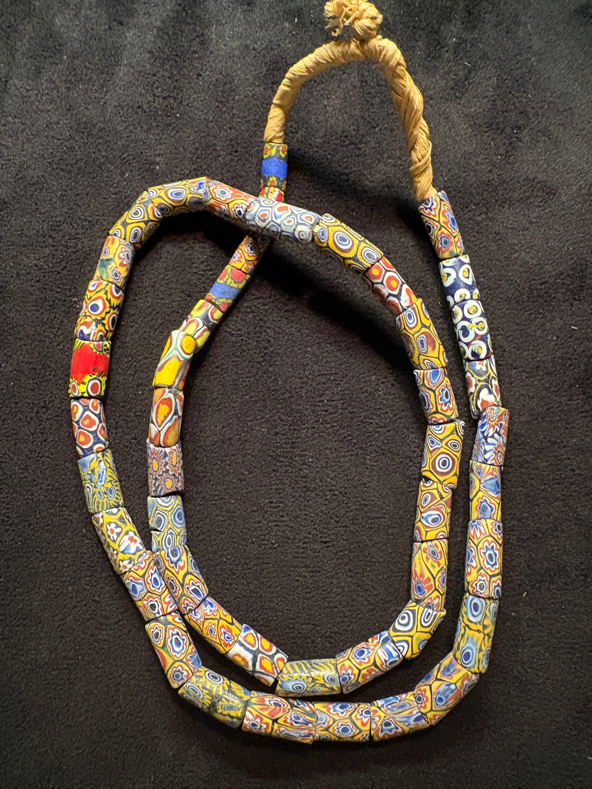 Antique Venetian African Trade Bead Necklace - Millefiori Beads 28" [BR0013)
