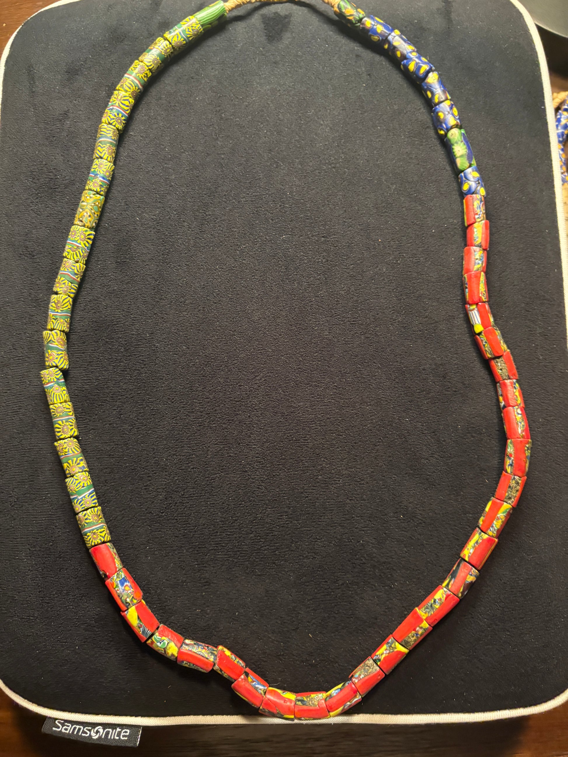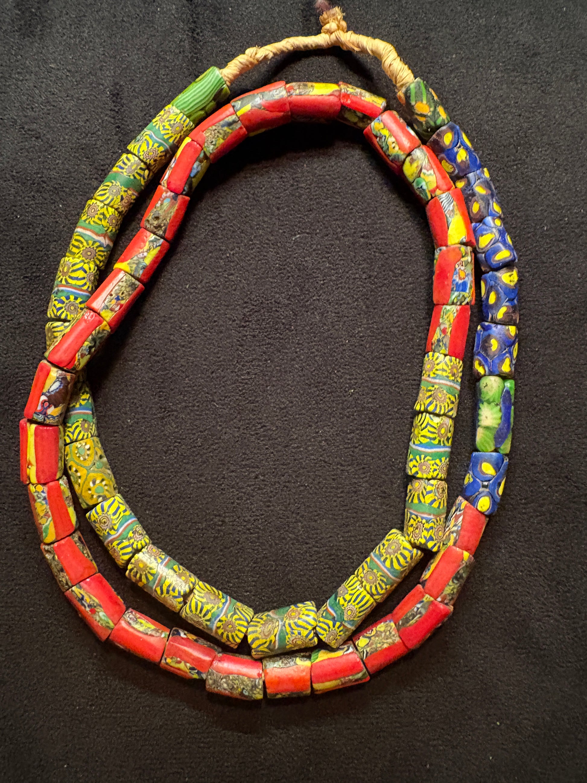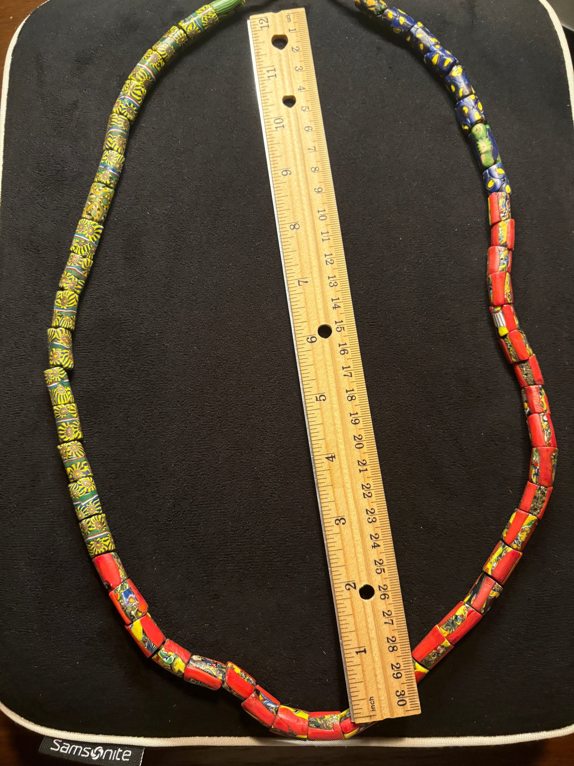Antique Venetian African Trade Bead Necklace - Millefiori Beads 32" [BR0014)