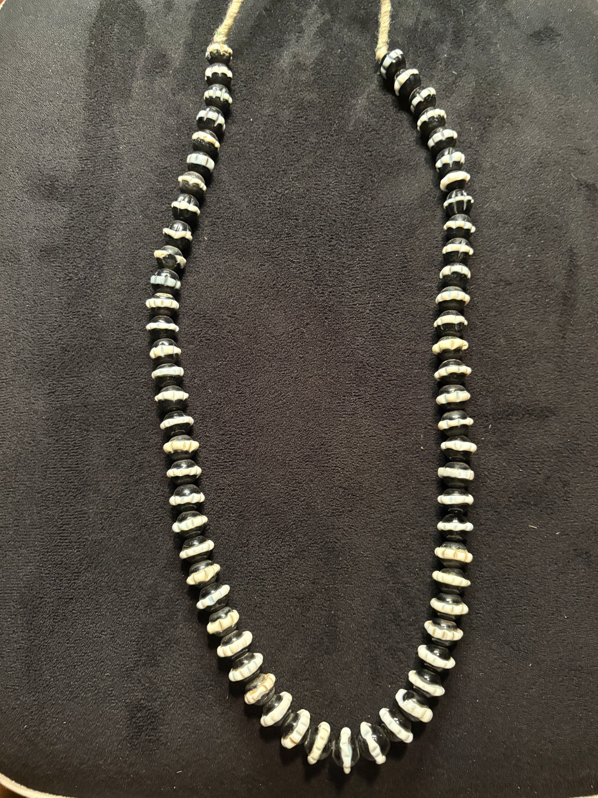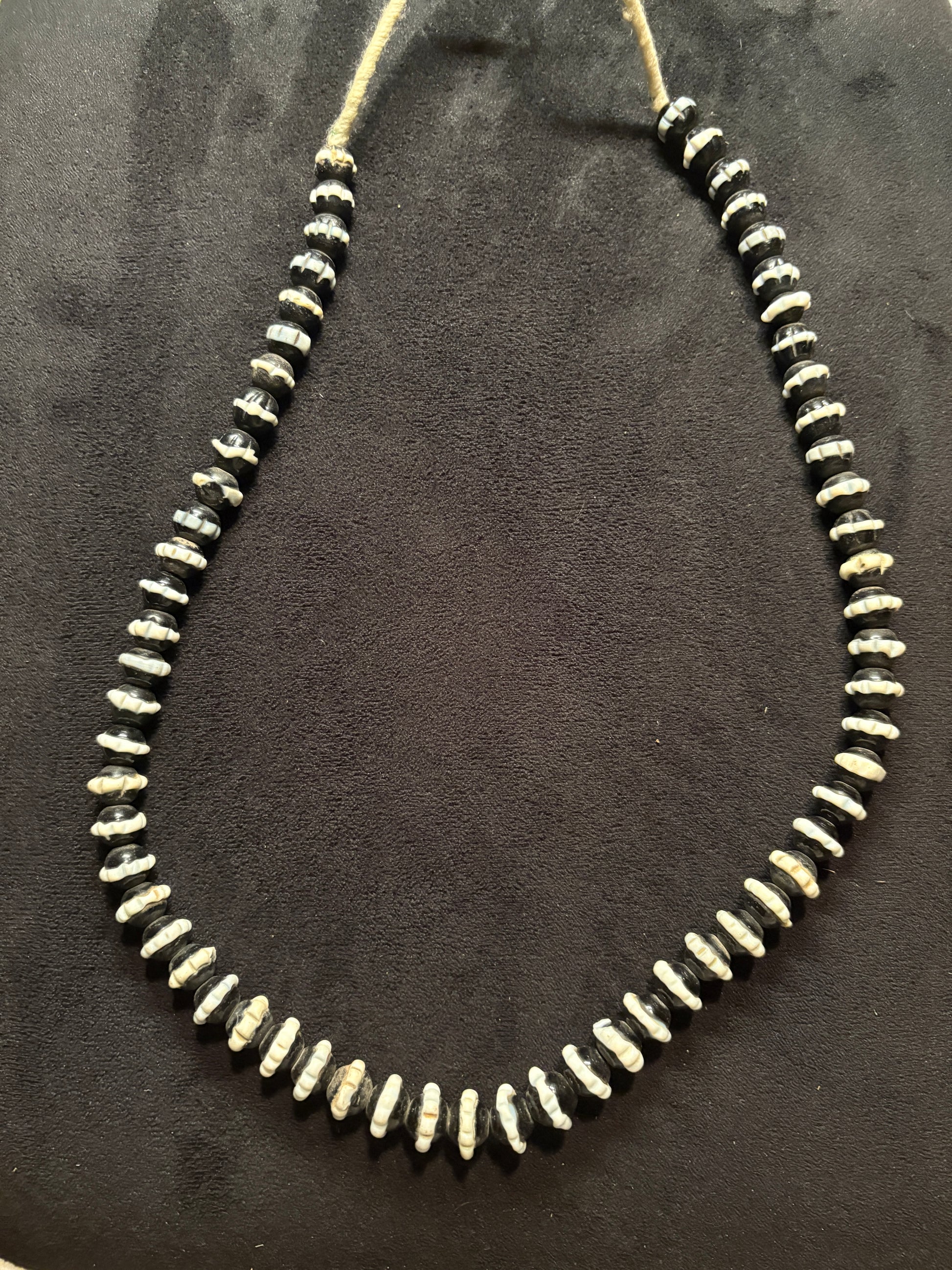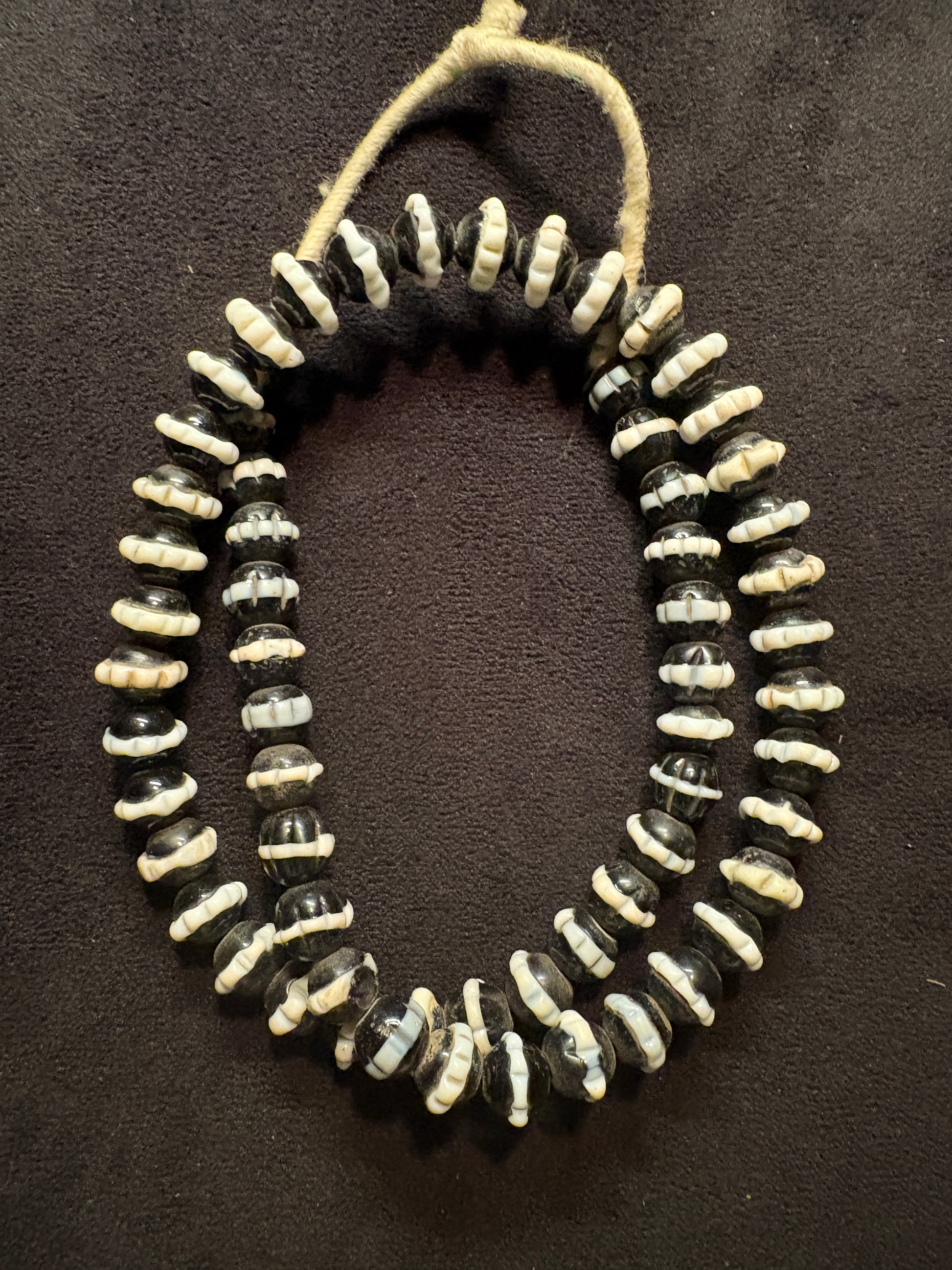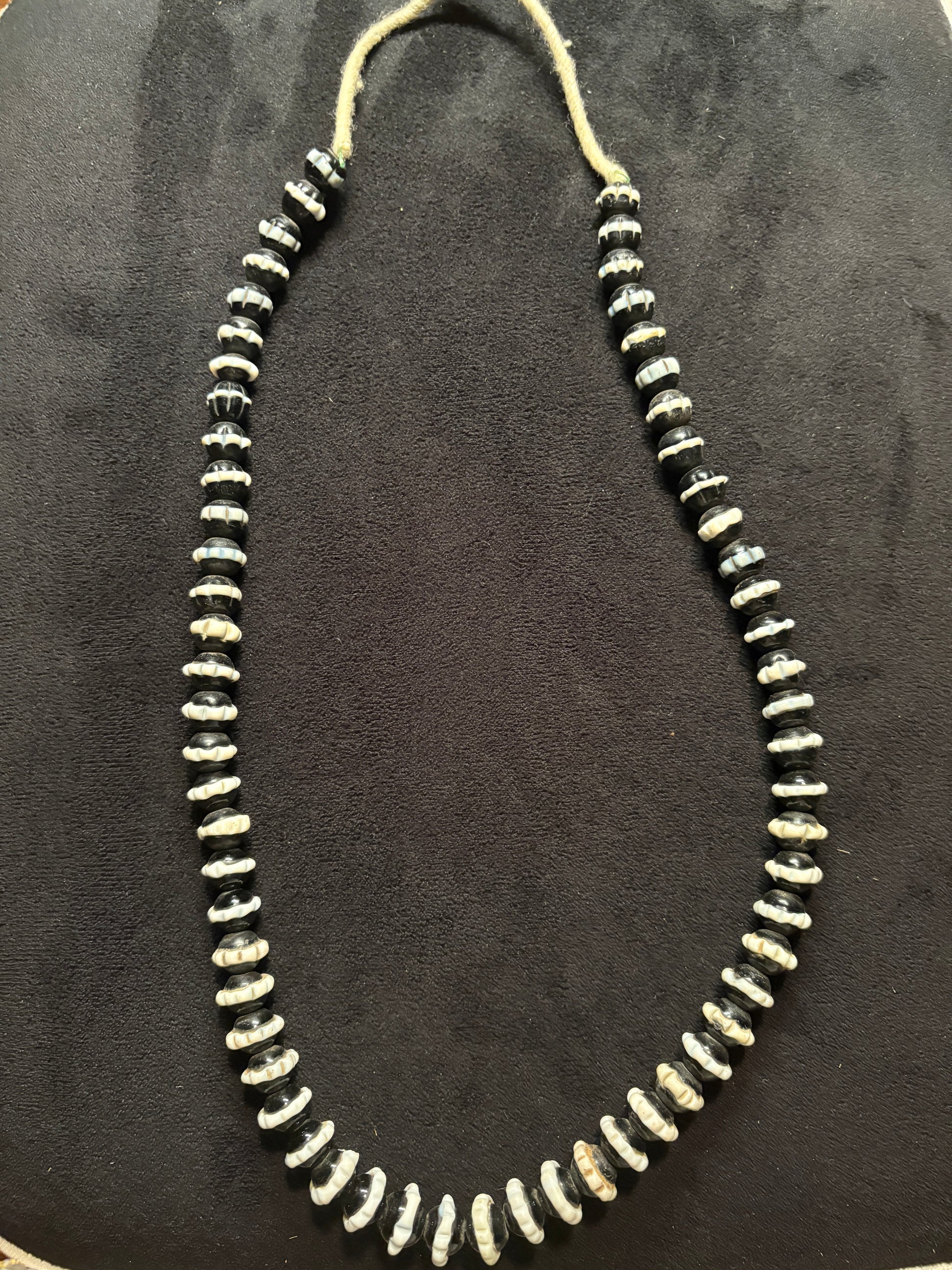 Antique Authentic African Trade Bead Necklace -Dogtooth Hot Pinched Beads 26" [BR0012)
